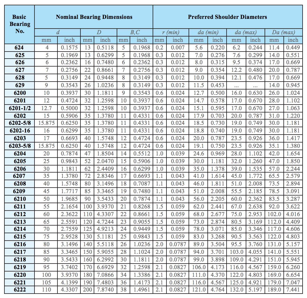Deep Groove Ball Bearings 62 Series Table (Any closure type is available)